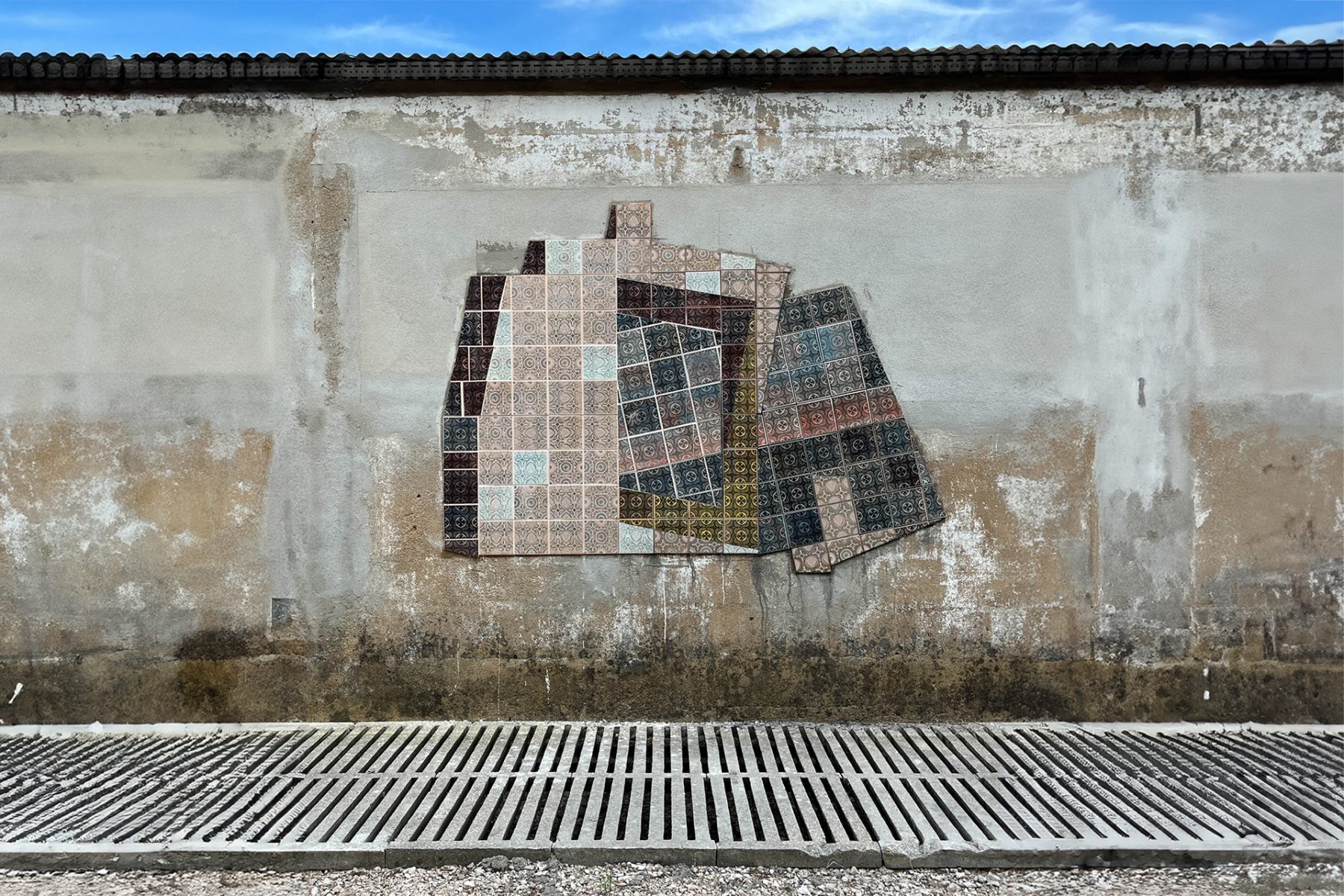 As a May-July 2024 Artist in Residence at Aviário Studio in Ferreira do Zêzere, Portugal, I focused on researching and experimenting with screen printing on ceramic tiles. Over the course of my residency, I developed techniques that resulted in a 100-meter-long permanent installation along the exterior wall of the studio. Using more than 500 hand-printed tiles, I created a series of pieces that explore various tones, patterns, and geometric designs.