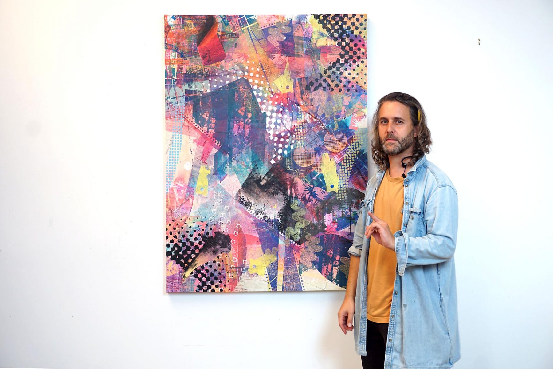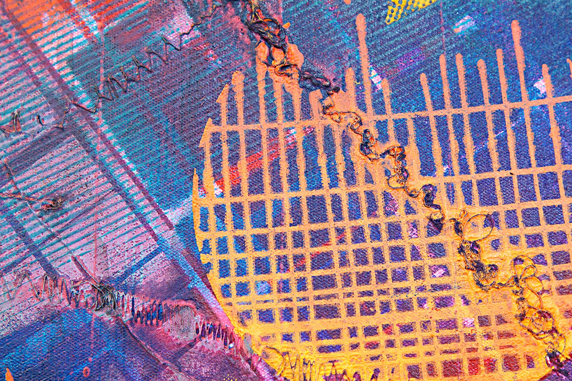 Explosion No. 5 Category : 2D artworkDate : 2021 Media Screen Prints and Thread on CanvasSize 36 x 48 inchesYear 2021 #color calibration#Explosions