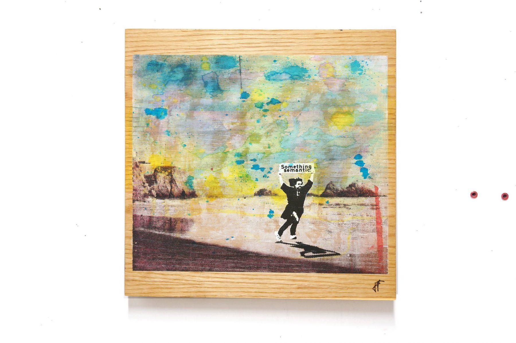 Something Semantic Category : 2D artworkDate : 2013 Media Screen print and dye on wood panelSize 16 x 16 inchesYear 2013 Notes:From the series “Ideas at Ocean Beach.” #Ideas At Ocean Beach#language studies