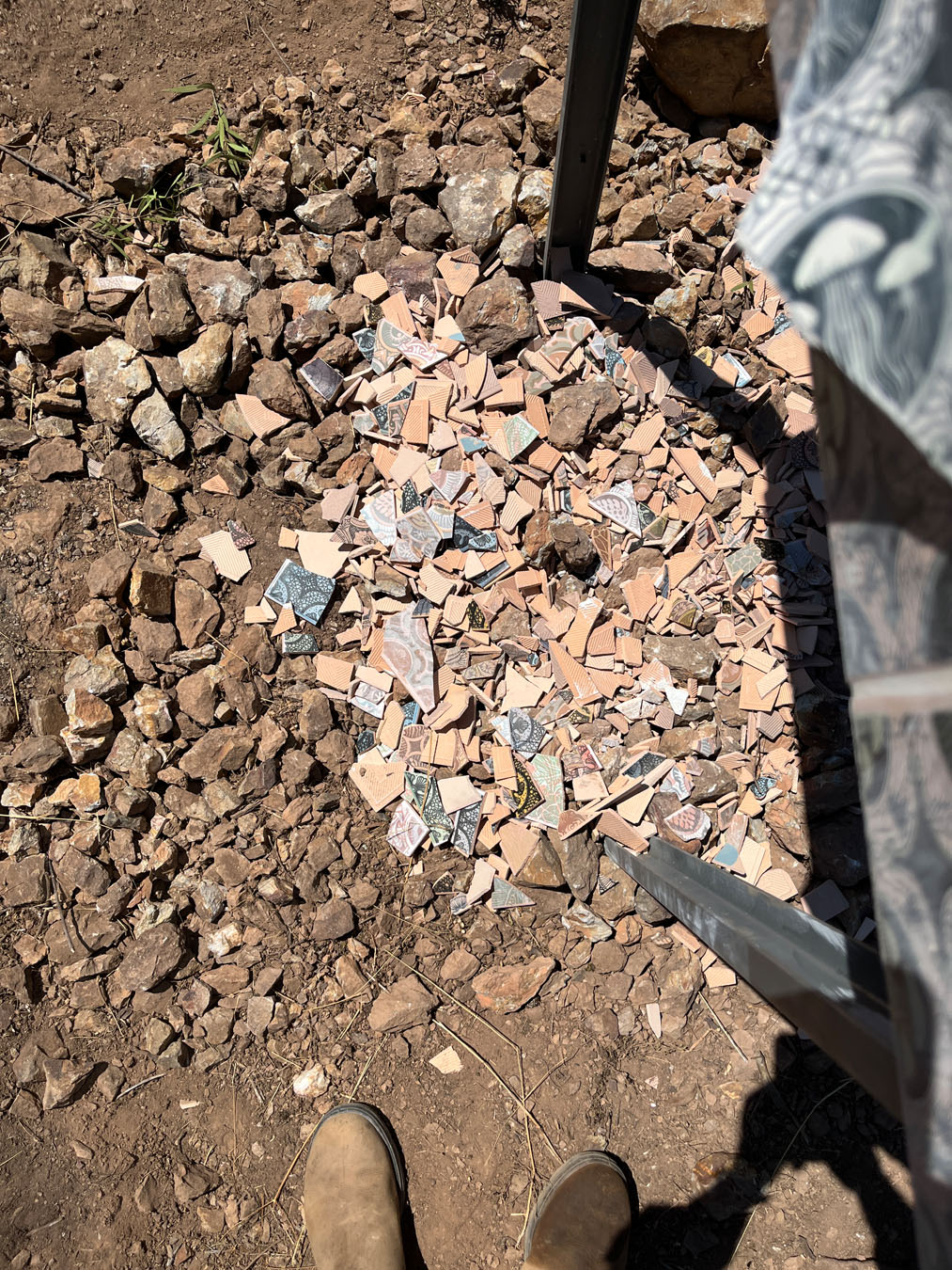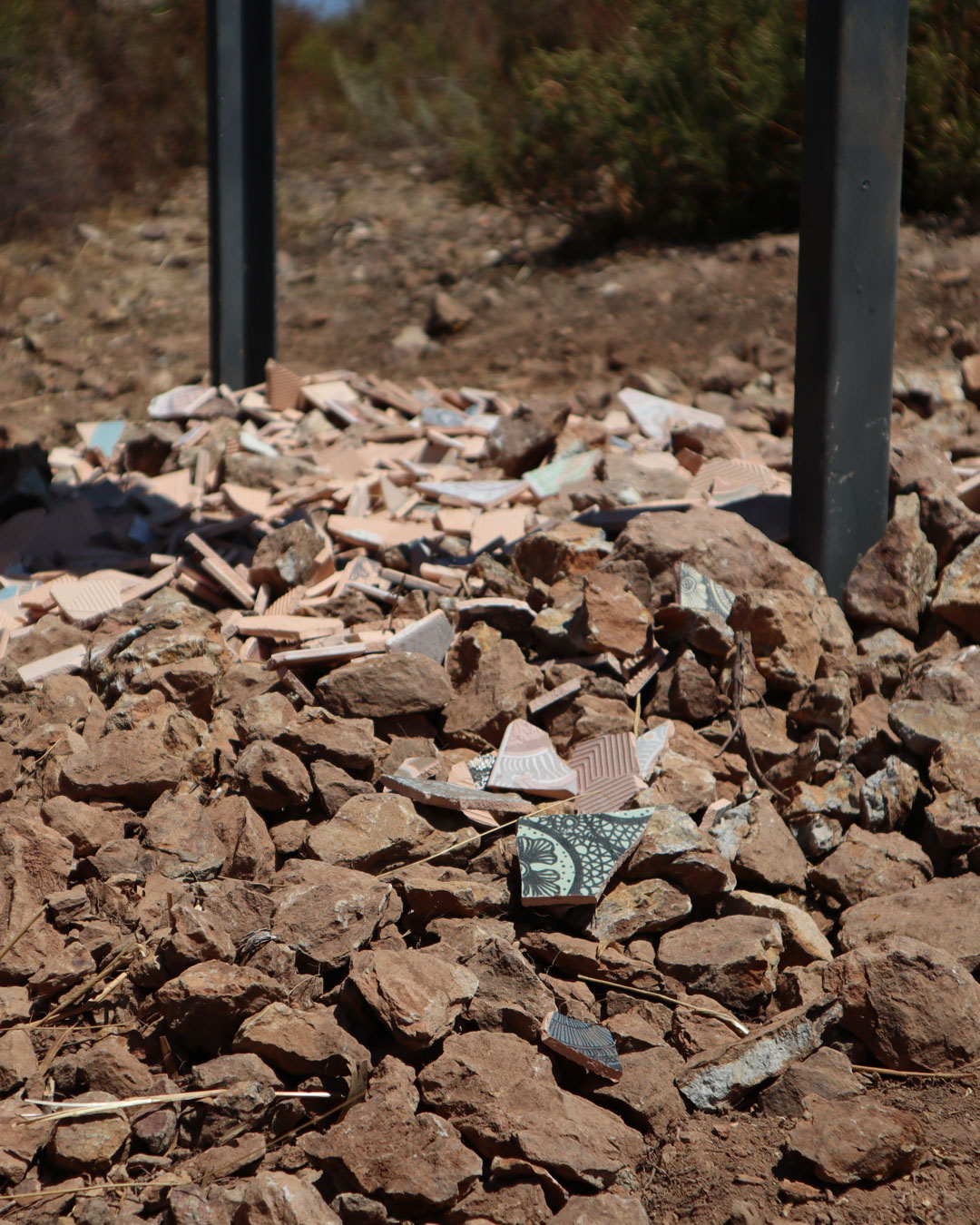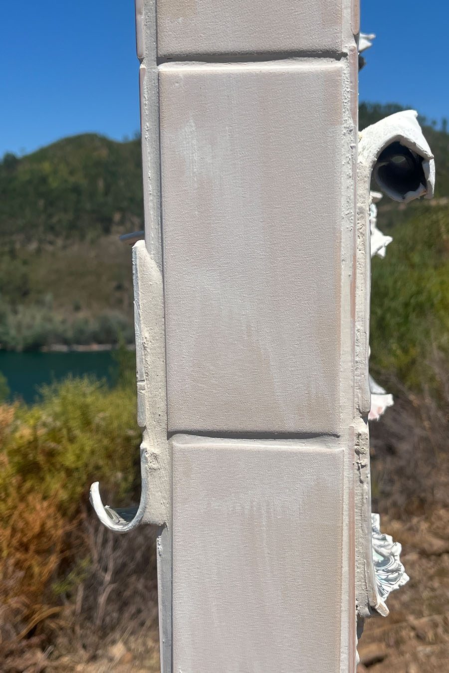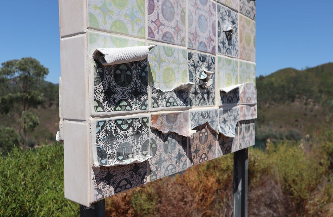 Structurally, the monolith was built to decay slowly. It was made with proper outdoor installation materials and materials (no wood!) — and sealed for hornets and rain. The feet are buried and piled with a ceremonial tile shard mound.